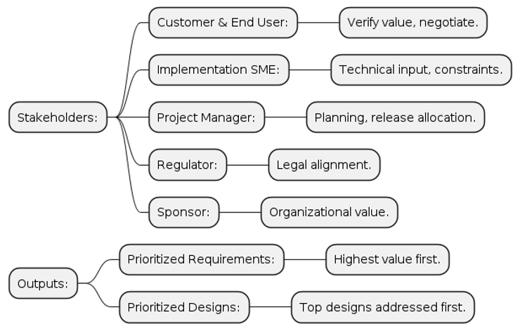 Requirements: Text, matrices, or diagrams ready for prioritization.